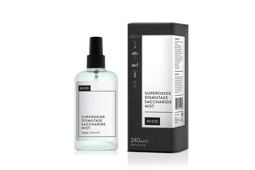 NIOD Superoxide Dismutase Saccharide Mist is a facial mist formulated as an anti-oxidant. Extended use helps reduce water loss and the look of i...